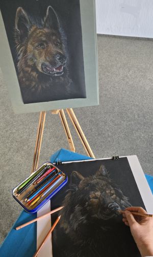 Daher freue ich mich über jedes Tier, das den Weg zu mir ins Atelier findet. Es sind die tollen Begegnungen mit Hund und Besitzer, die meine Arbeit bereichern. Es ist schön, wenn wir uns kennen lernen können und ich das Persönliche mit in meine Arbeit einfließen lassen kann.